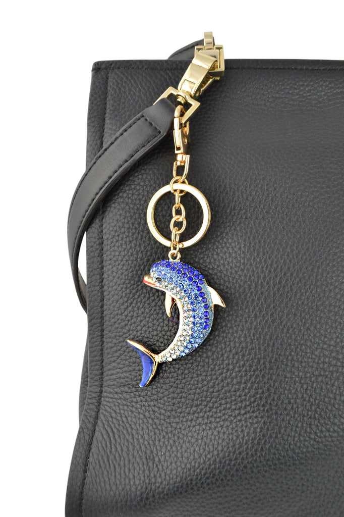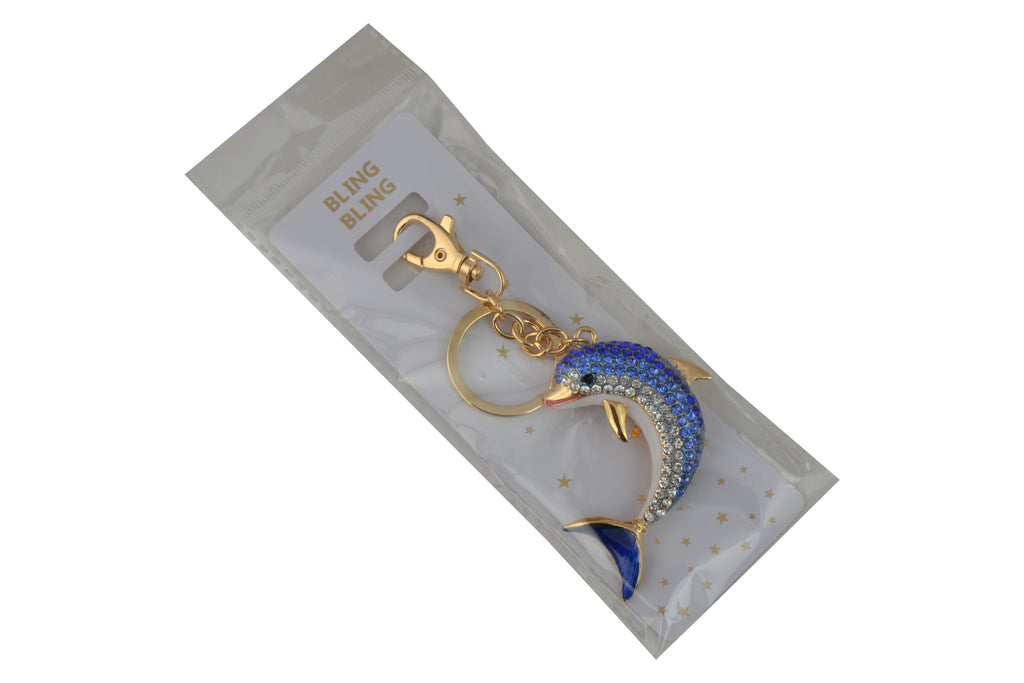 Keychain Charm Jeweled with Rhinestones - Dolphin in Blue