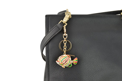 Keychain Charm Jeweled with Rhinestones - Fish Gold