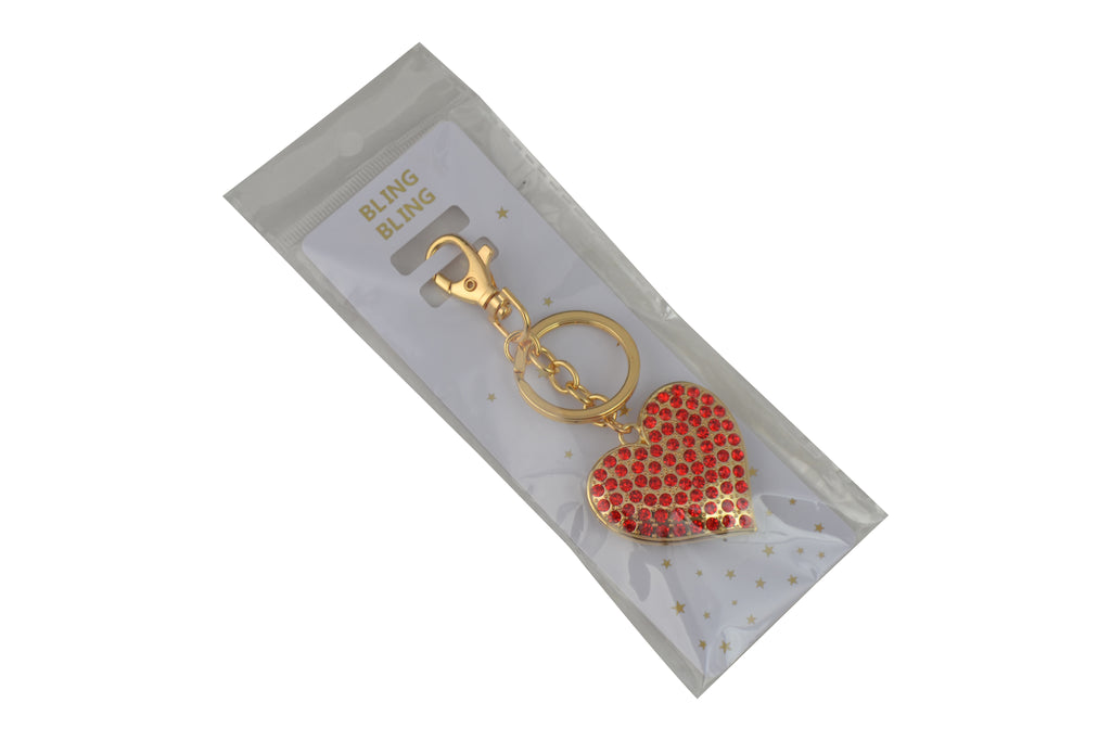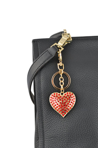 Keychain Charm Jeweled with Rhinestones - Heart in Gold & Red