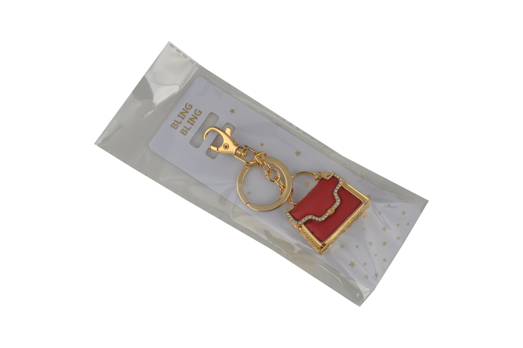 Keychain Charm Jeweled with Rhinestones - Purse in Red & Gold