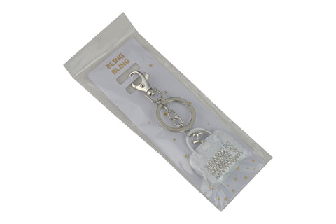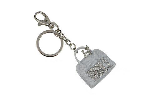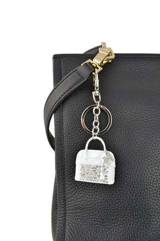 Keychain Charm Jeweled with Rhinestones - Purse in Silver