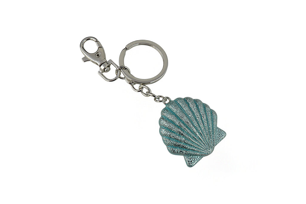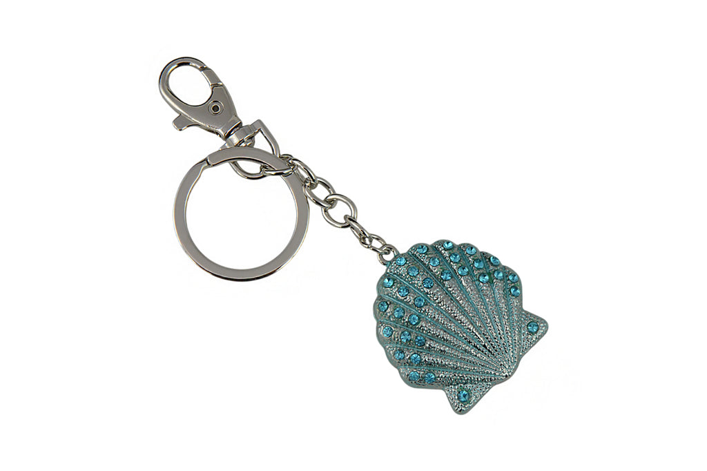 Keychain Charm Jeweled with Rhinestones - Seashell Gold & Blue