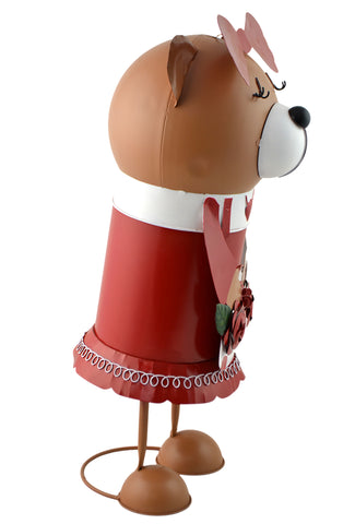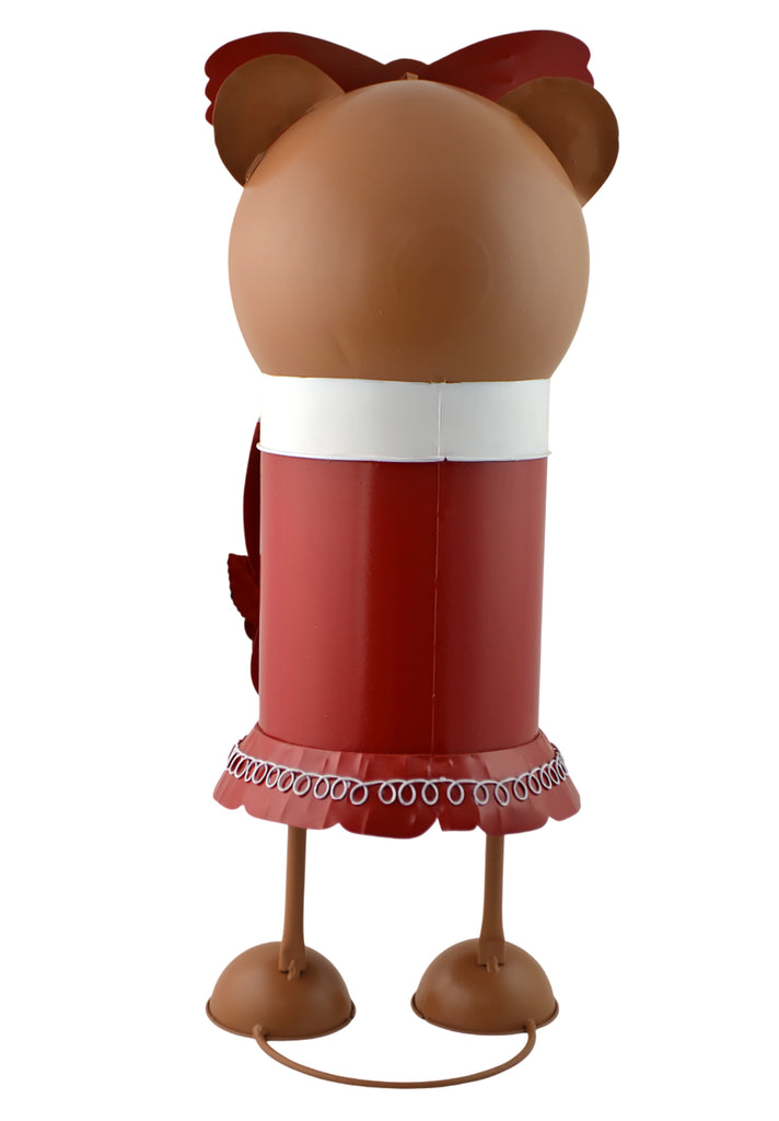 Bring charm and warmth to your outdoor space with this delightful 20-inch bobble head bear lawn décor sculpture. Featuring a sweet female bear holding a bouquet of flowers, this decorative accent adds a cheerful and welcoming touch to gardens, patios, walkways, and yards. Crafted from durable metal and treated for rust resistance, this sculpture is designed for outdoor use while maintaining its vibrant look. The playful bobble head gently moves with the breeze, adding motion and personality that sets it apart from ordinary lawn decorations. Perfect as a seasonal accent, gift, or everyday yard décor, this bear sculpture is sure to make visitors smile.