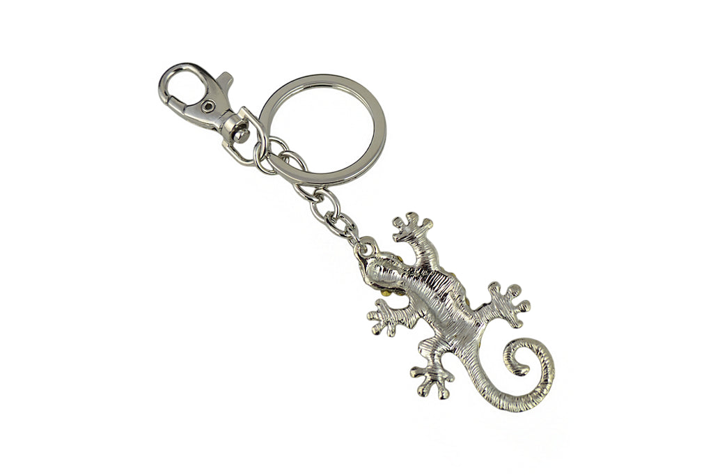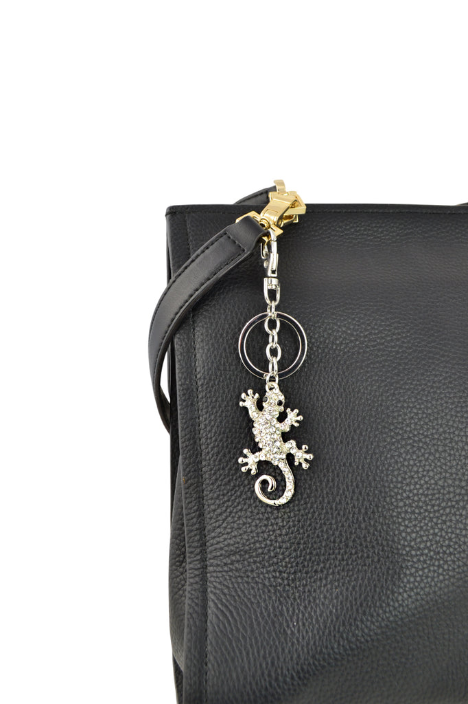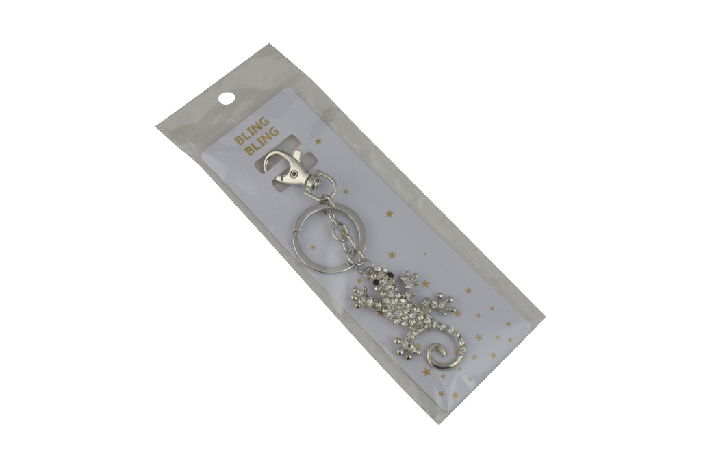 Keychain Charm Jeweled with Rhinestones - Gecco in Silver