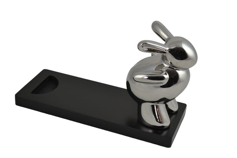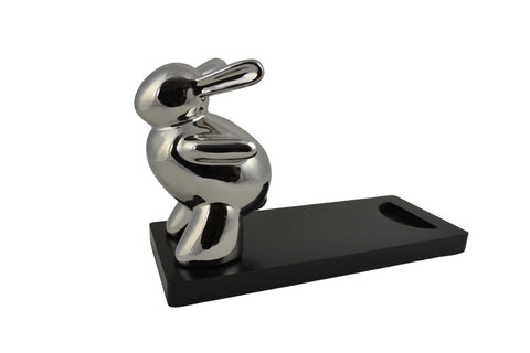 10" Polished Silver Rabbit on Wooden Base Bottle Holder