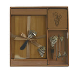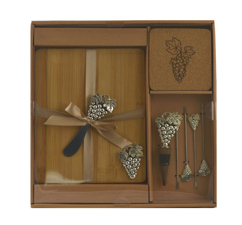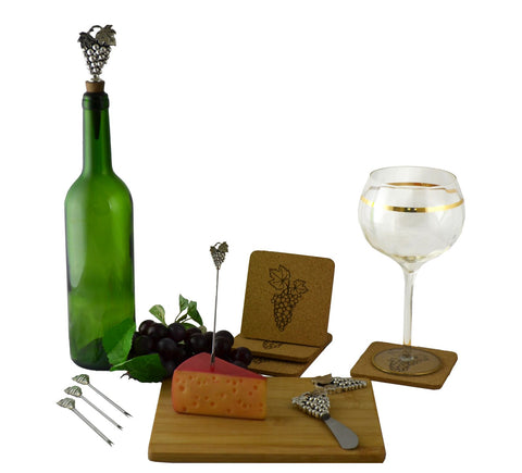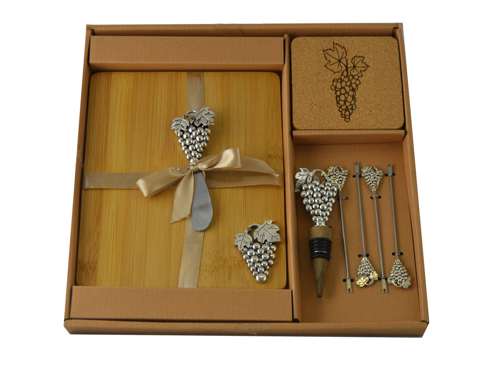 • Includes 1 cutting board, 4 cheese picks, 1 wine stopper, 1 cheese knife, and 4 wine coasters