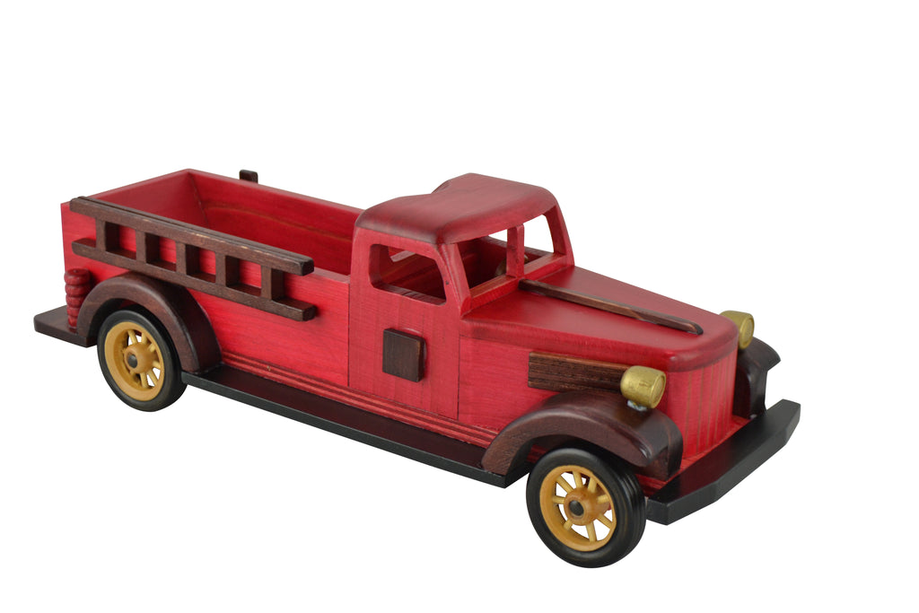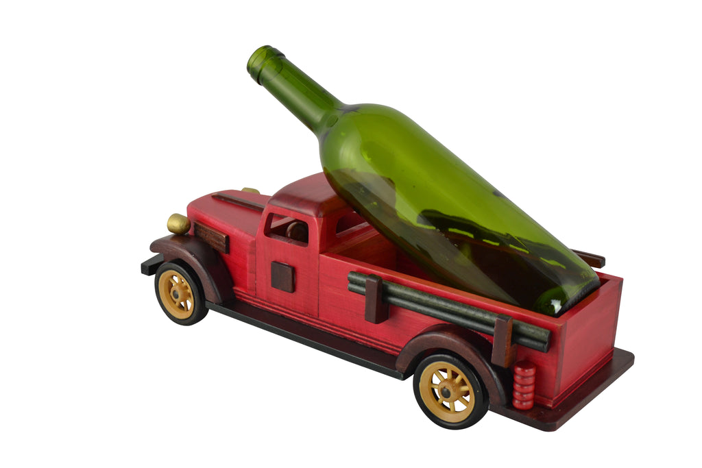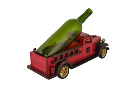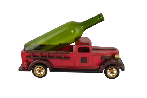 This wooden bottle holder is handmade entirely out of wood. This fire truck has working wheels and can roll as well as fine attention to detail. This bottle holder will hold any round standard 750ml bottle. With its antique styling, it is sure to bring a sense of nostalgia when using it.