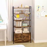 This 5 tier shelf organizer with bottom cabinet is the perfect addition to any contemporary/modern style home. The solid pattern bookcase measures 56 inches in height, 27 inches in length, and 12 inches in width. It includes 5 shelves and a bottom cabinet, providing ample storage space for your books, decorative items, and more. Crafted with high-quality materials, this bookcase is durable and sturdy, ensuring it will last for years to come. The set includes the bookcase itself, making it a great option for those looking to organize their home library. Whether you're a fan of contemporary/modern style or simply need more storage space, this 5 tier shelf organizer with bottom cabinet is the perfect choice.