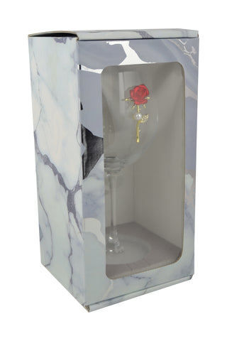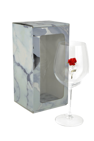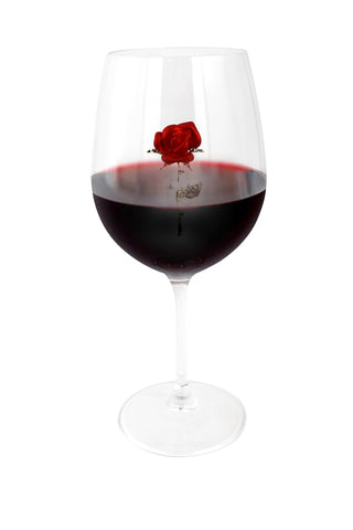 Large 18 Ounce Wine Glass with Gold and Red Rose Emblem