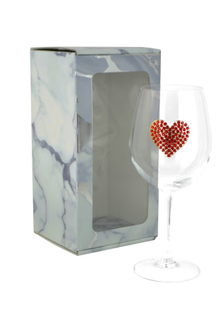 Large 18 Ounce Wine Glass with Red Heart Emblem