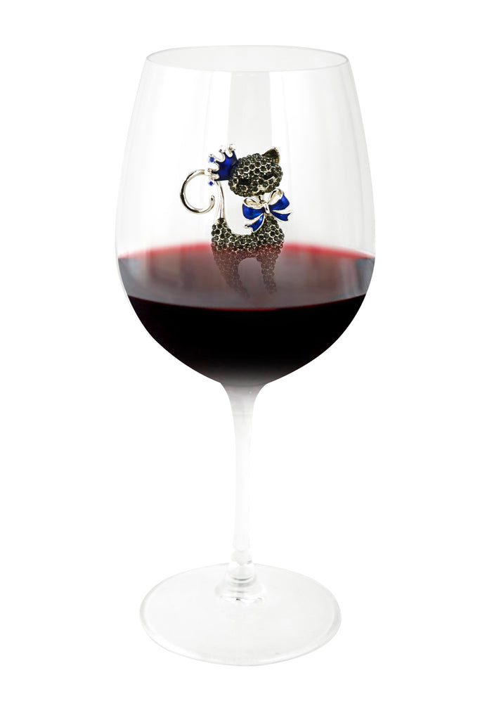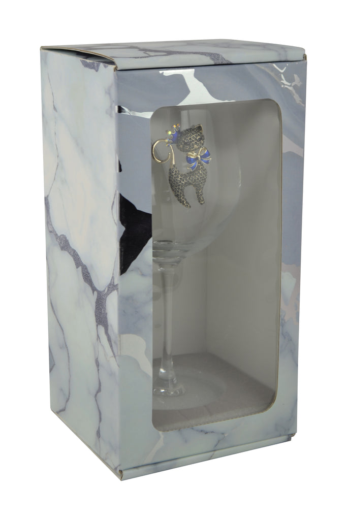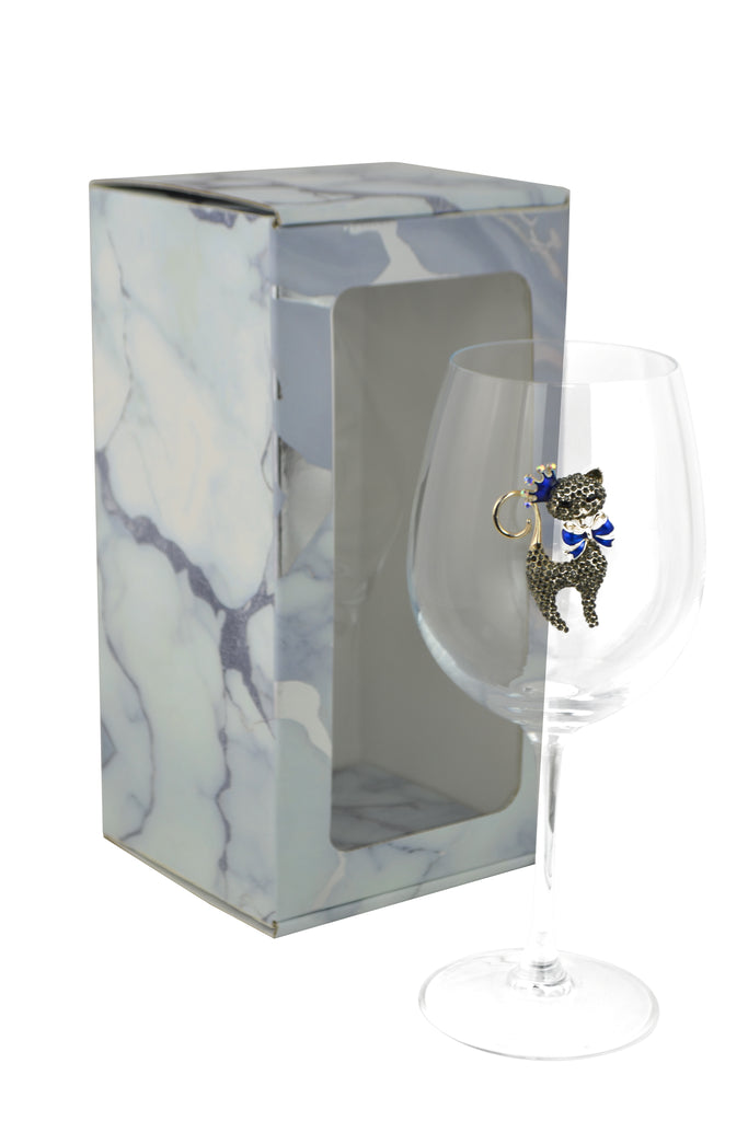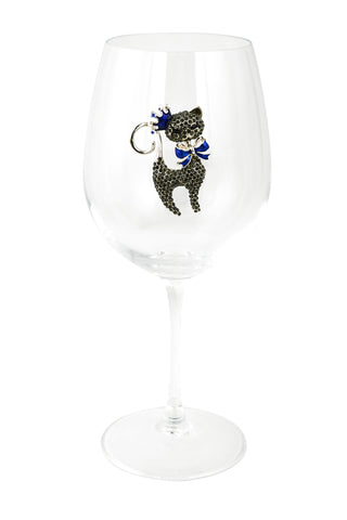 Large 18 Ounce Wine Glass with Silver & Blue Cat Emblem