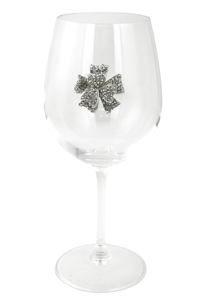 Large 18 Ounce Wine Glass with Silver Bow Rhinestone Emblem