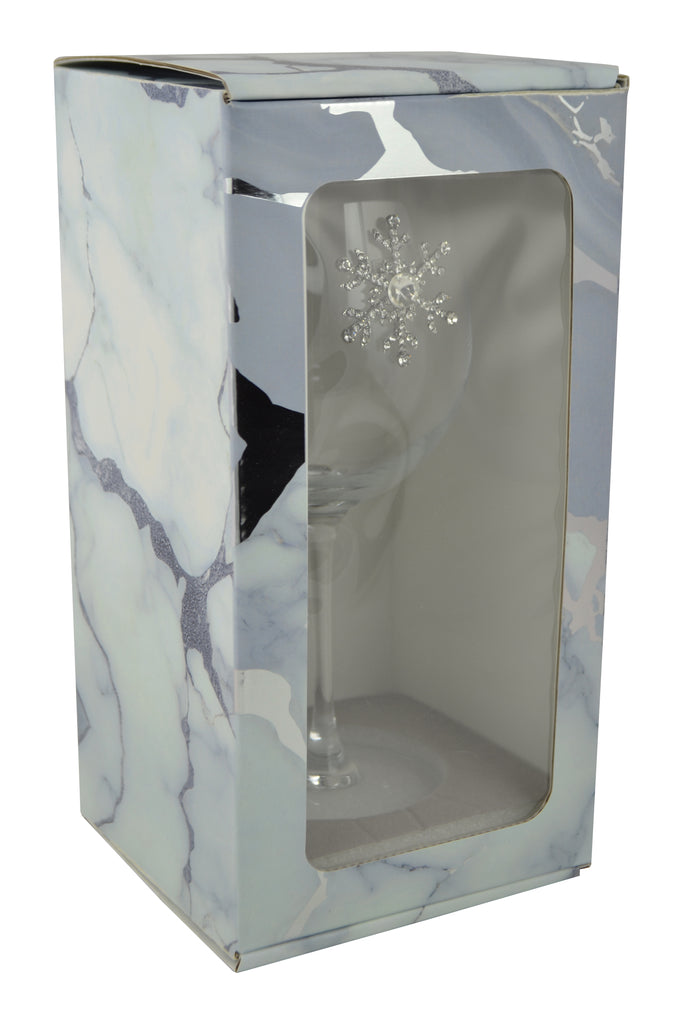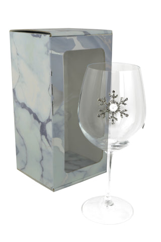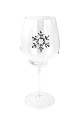 Large 18 Ounce Wine Glass with Silver Snowflake Emblem