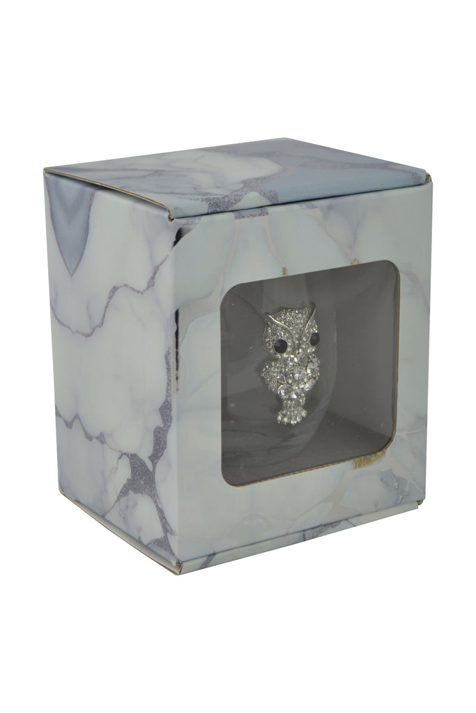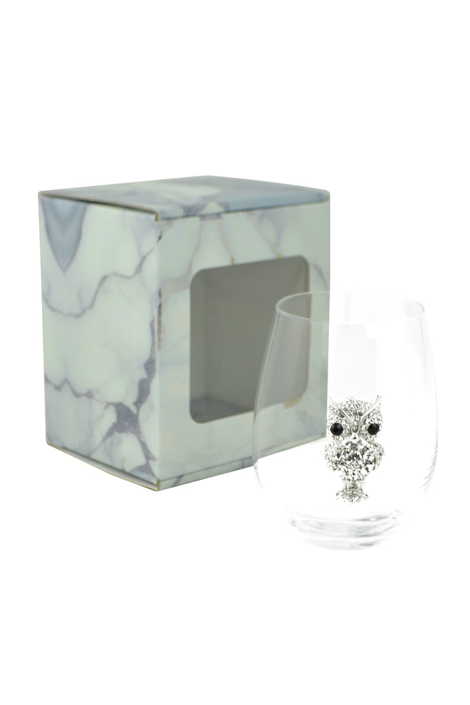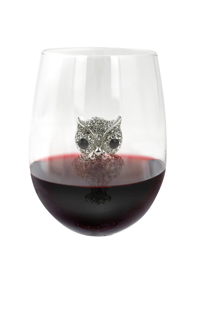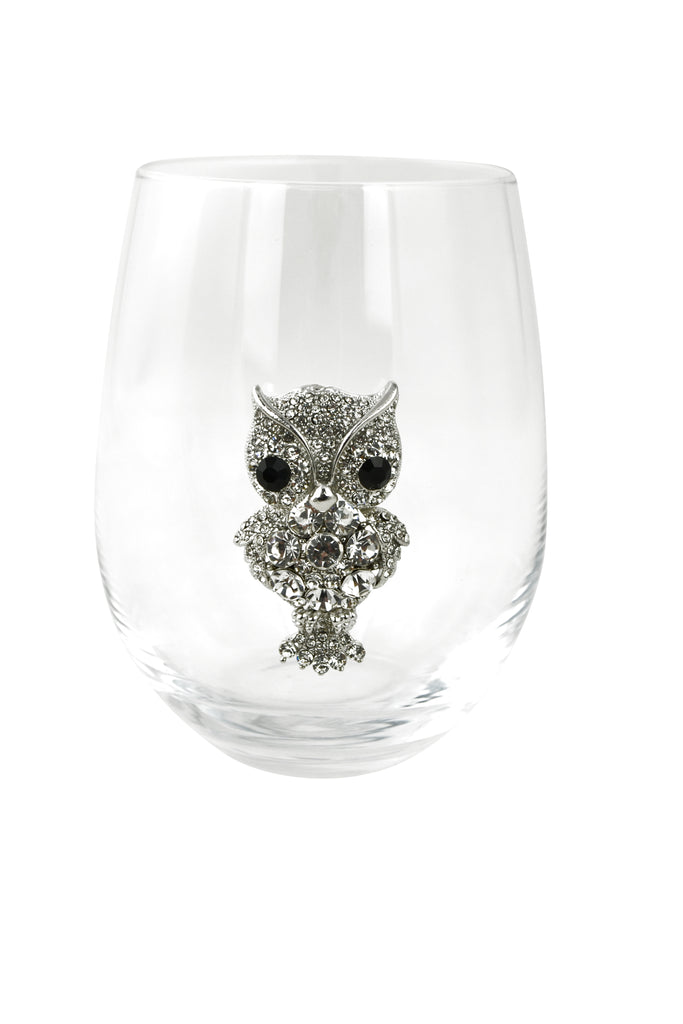 Large 18 oz Stemless Wine Glass Silver Owl Jewels