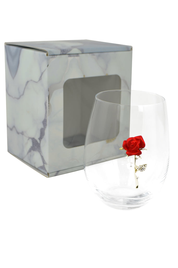 Large 18 oz Stemless Wine Glass with Red Rose Jewels