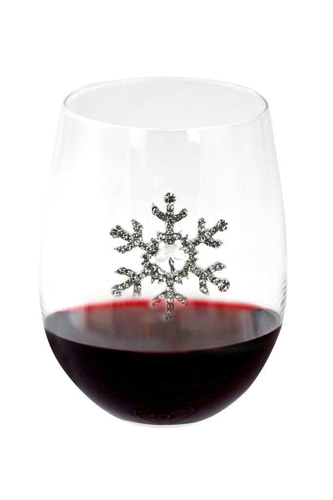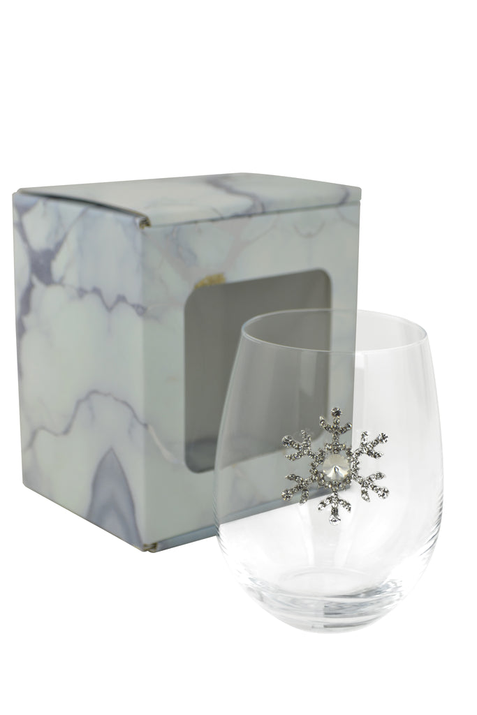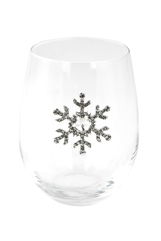 Large 18 oz Stemless Wine Glass with Silver Snowflake Jewels
