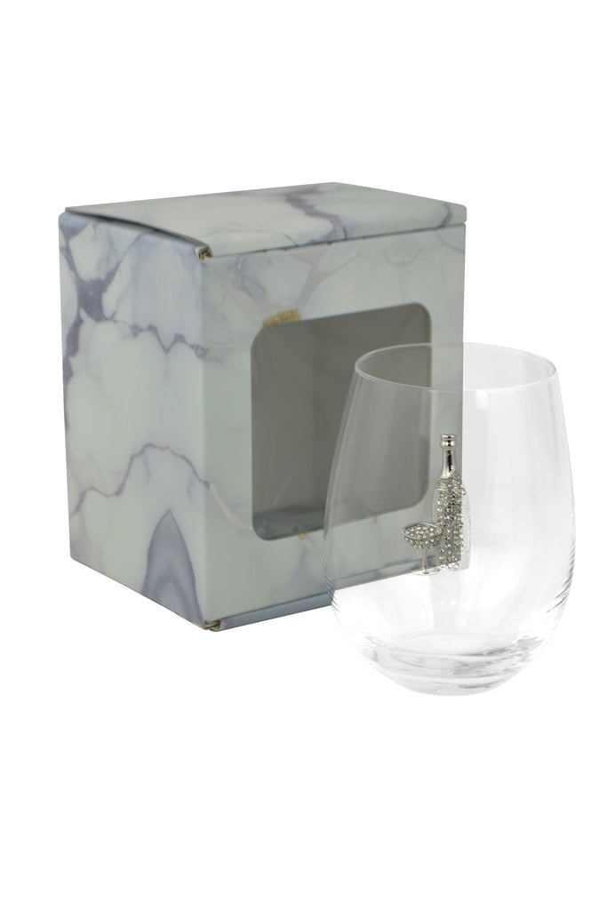 Enjoy wine in style with this large 18-ounce wine glass, designed to combine elegance, functionality, and convenience. Crafted from clear, high-quality glass, this stemless wine glass enhances the appearance and aroma of your favorite red or white wines. The sparkling rhinestone emblem adds a glamorous accent while also serving a practical purpose—mix and match multiple glasses so guests can easily recognize which glass is theirs during parties and gatherings. No more confusion at the table or bar. With its generous 18 oz capacity, this decorative wine glass is perfect for wine, cocktails, or sangria. Whether you’re entertaining guests or searching for a thoughtful gift for wine lovers, this rhinestone wine glass delivers both beauty and function. Upgrade your glassware collection with an elegant wine glass that makes every sip feel special.
