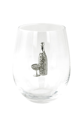 Large 18 oz Stemless Wine Glass with Wine Bottle & Glass Jewels