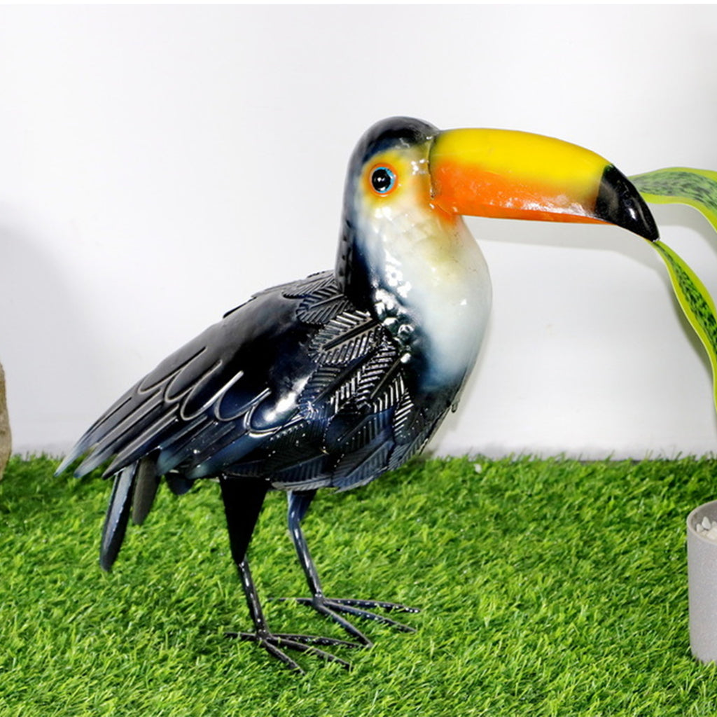 | Bring tropical flair to your yard with this striking 15-inch toucan garden decoration statue. Designed in classic black and white with a bold orange and yellow beak, this piece adds vibrant charm to any outdoor setting. Crafted from metal that is durable and has been treated to withstand the elements while keeping its eye-catching colors. Perfect for patios, porches, flower beds, or gardens, this toucan makes a playful and stylish accent for your outdoor décor. |